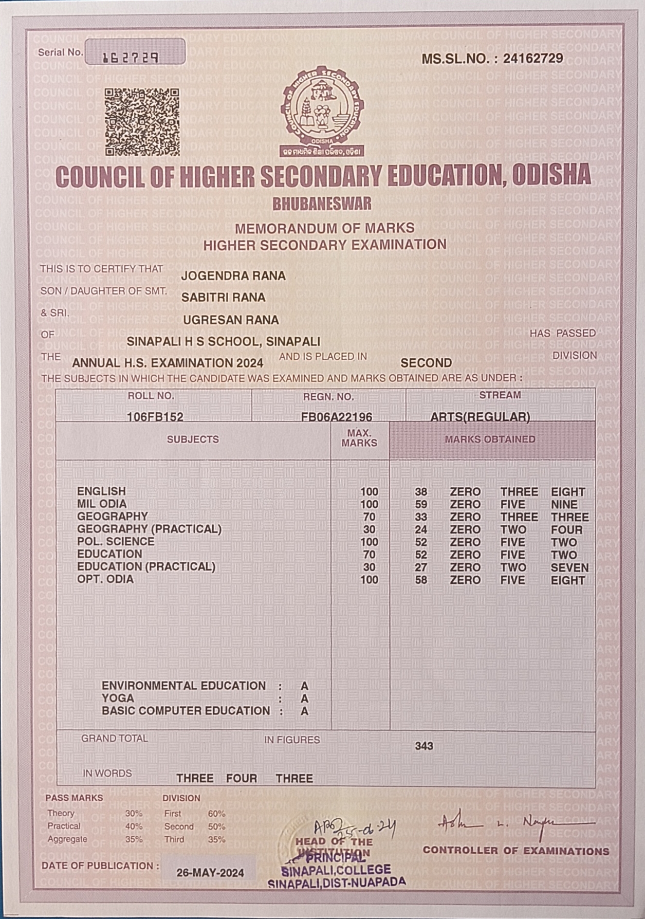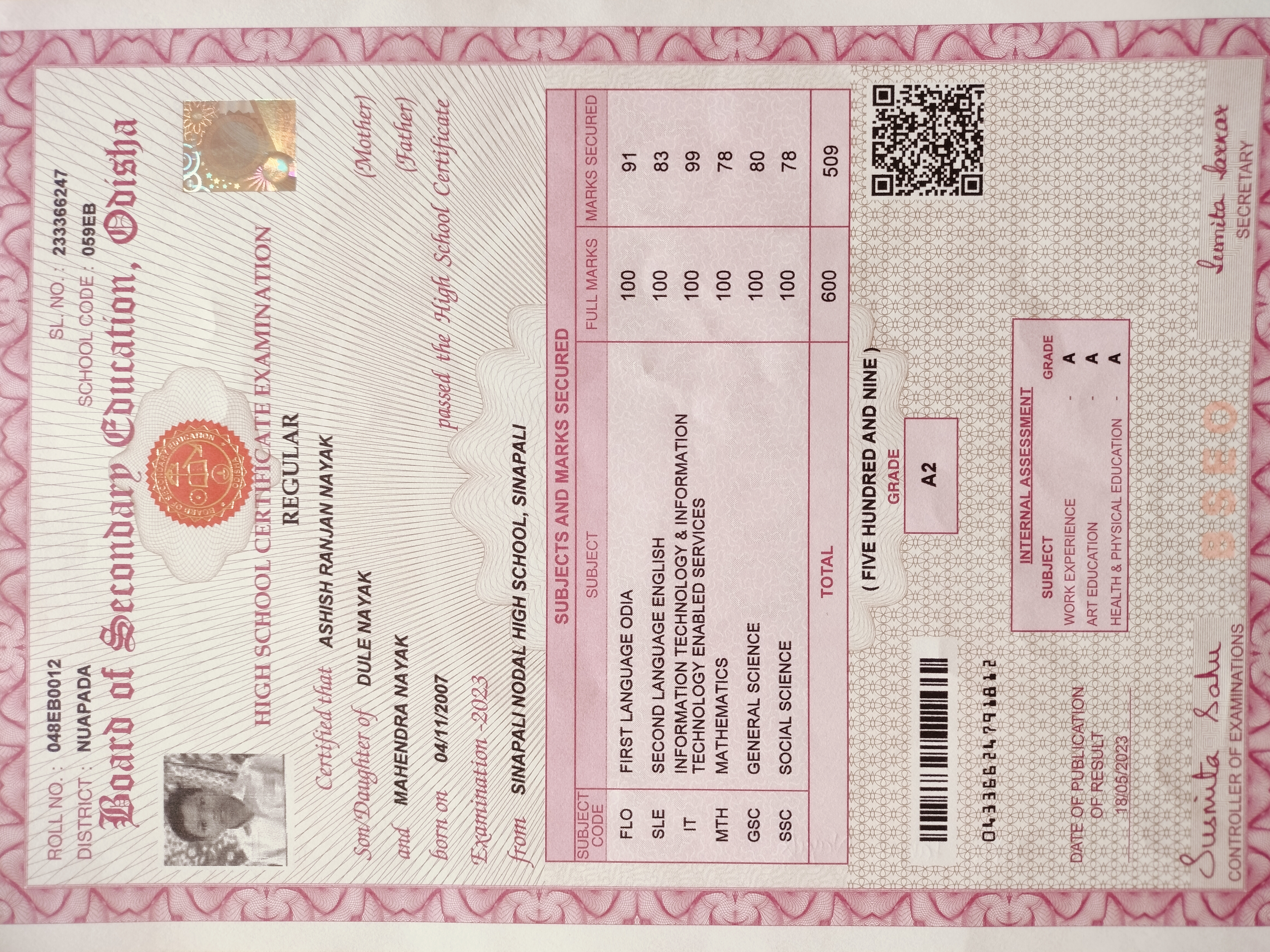 7 / 13 (10th Marksheet)