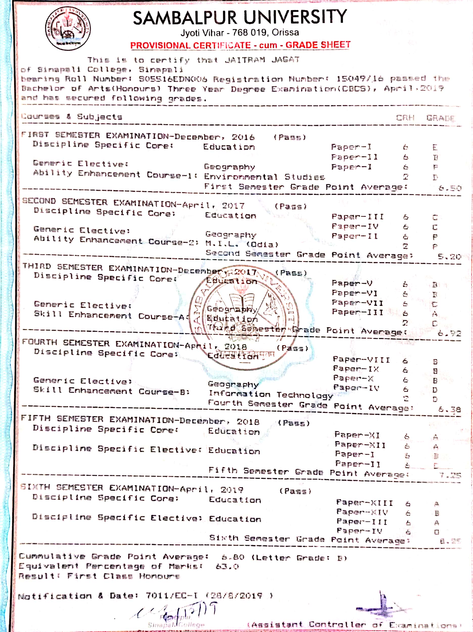 11 / 13 (Degree Marksheet)